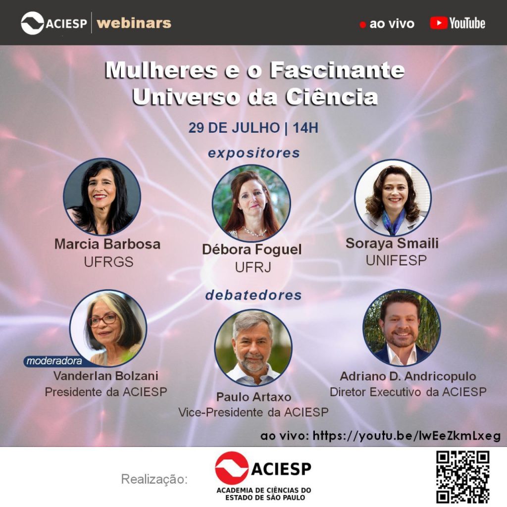 Assista ao webinar ao vivo no canal da ACIESP no YouTube, a partir das 14h o dia 29/7.